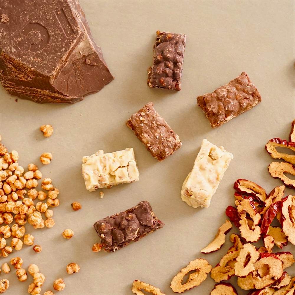 一口食べると、濃厚なチョコレートと焙煎したハトムギの豊かな香ばしさ、そしてナツメの自然な甘みが口いっぱいに広がります。素材本来のおいしさを存分にお楽しみください。